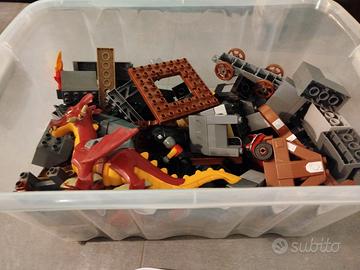 Lego DUPLO vari a tema Castello. Pezzi, catapulte, omini, cavalli, draghi ecc. Il contenitore non è compreso.