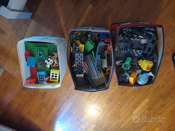 Vendo 3 scatoloni di Lego Duplo miste comprensivo tra le altre cose di trenino con rotaie funzionante, diversi mezzi da lavoro, gru, fattoria degli animali, negozi etc.. più moltissime basi e pezzi generici