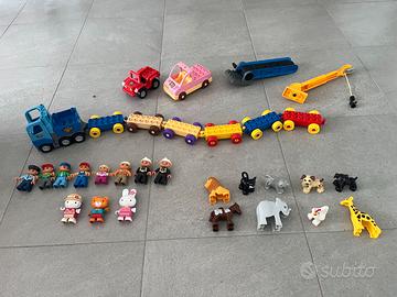 Vendo due sporte di Lego DUPLO misti comprendenti 8 personaggi, 3 cartoni animati Hello Kitty e 10 animali, oltre a piattaforme di varie dimensioni, mattoncini di tutti i colori, finestre, arco, tralicci, camion con gru, due automobili e molto altro. SOLO RITIRO IN ZONA VISTO E PIACIUTO