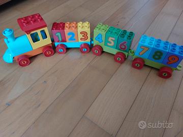 Lego duplo composto da 3 set: stazione polizia, mezzi di trasporto, trenino dei numeri. Comprensivo di duplo misti e base tutto in ottime condizioni.
