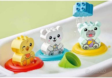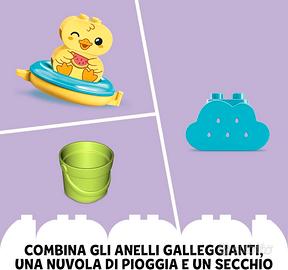 GIOCO DA BAGNO LEGO DUPLO: il set Ora del Bagnetto: Treno degli Animali Galleggiante, è un gioco didattico per bambine e bambini da 1,5 anni con una papera, un orso polare e un ippopotamo giocattolo, 3 ciambelle galleggianti, un secchio e una nuvola