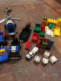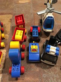 Vari pezzi di LEGO DUPLO inclusi camioncini trenini macchinine pezzi per costruire ecc ecc elicottero e lancia della polizia . Spedizione a parte vendo solo in blocco