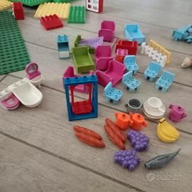 Vendo in perfette condizioni bidone pieno di Lego Duplo originali, privi di istruzioni: villetta, castello principessa Sofia, gelati/dolci, camion pompieri e automezzi polizia, più di venti personaggi, animali, mobilio, aereo, moto, moto di spiderman con personaggio, camion spazzatura, betoniera, base grande giardino.