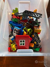 Lego duplo (mattoncini originali!) possibilta’ di costruire treno merci e treno passeggeri con ampliamento rotaie, fattoria animali, miniera e cava, zoo animali, tutto corredato con istruzioni sia cartacee sia app online. Come da foto sono due cestoni (ikea) pieni di mattoncini. Vendo euro 150 tratt. Christian 3493779755