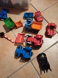 Una bella cassa piena di costruzioni fra le quali la fattoria Duplo ed il treno Duplo. Mezzi, omini ed animali.
