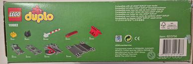 Contiene 23 pezzi: un segmento dritto, 10 segmenti curvi, 2 angolo di rimbalzo, 2 scambi, un passaggio a livello e un segmento funzionale rosso per fermare il treno. Compresa scatola originale ed istruzioni. Dai 2 anni in su.