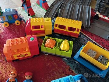 Vendo Set Lego duplo treno 10508 con altri accessori misti (altro treno, altro ponte, set Plain, fattoria, auto polizia come da foto). Lego Duplo originali.