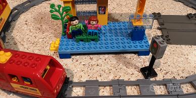Vendo Treno passeggeri elettrico, con stazione e tutti i binari in foto marca UNICO di ottima qualità, compatibili Lego DUPLO. + In aggiunta la vendita comprende 3 componenti Lego DUPLO originali: vagone merci, passaggio auto con barriera. + Con istruzioni, no scatola. Consegno manualmente zone Roma Termini, Roma EUR, Latina e Aprilia oppure spedisco. Claudio 3288332154
