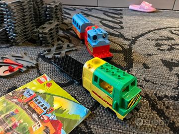 Due kit completi lego duplo 10507 piu 5609 con rotaie scambi / incroci e stazione. Istruzioni del kit 10507 e istruzioni per varie. Tantissimi pezzi per fare piste super lunghe.