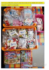 NESSUN PEZZO MANCANTE, tranne la vela del WindSurf del set n.41037 ed un paio di pezzi rovinati (mantello azzurro del set 41105 e l'abito da signora del set 7586);
