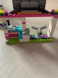 A corredo la biglietteria, chiosco pop corn, tabellone con mappa, tavoli e sedie e 4 minifigure di Andrea, Emma, Matthew e Naya