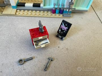 L’Officina creativa LEGO Friends 41351 contiene uno showroom con funzione di porta scorrevole e piattaforma girevole, piattaforma di sollevamento, cassetti degli attrezzi apribili e un ufficio al primo piano. Questo set LEGO Friends include anche 2 go-kart e tantissimi pezzi aggiuntivi per crearli e personalizzarli in tutti i modi. C'è anche un lancia-go-kart per inviare i go-kart finiti alla grande corsa, più 2 mini-doll e un gatto.