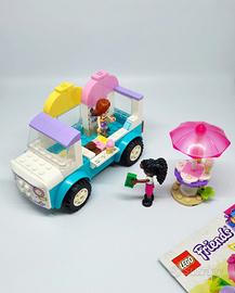 LEGO Friends 42644 - Camioncino dei Gelati di Heartlake City Vendo set LEGO Friends 42644 "Il Camioncino dei Gelati di Heartlake City", completo di scatola originale e manuali di istruzioni. Il set è perfetto per i bambini (età consigliata 4+) grazie al sistema "Starter Brick" che facilita la costruzione. È un set coloratissimo e pieno di dettagli adorabili! Caratteristiche principali: • Personaggi inclusi: 2 mini-doll (Elsa e Paisley) e un simpatico cagnolino. • Accessori: Un camioncino dei gelati apribile, un tavolino con ombrellone, sedie, coni gelato, una moneta e un registratore di cassa. • Condizioni: Usato pochissimo, pari al nuovo. I pezzi sono puliti e ben conservati. • Extra: Include la scatola originale e i libretti di istruzioni (1 e 2) come mostrato in foto. Ideale come regalo o per completare la collezione Heartlake City!