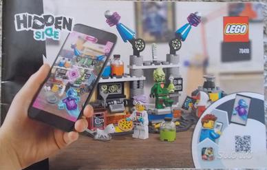 Vendo LEGO HIDDEN SIDE 70418 ritirato dai negozi. Completo, scatola e istruzioni originali incluse. 174 Pezzi. Ottimo stato. Età consigliata 7+. Prezzo Euro 20. Include: 3 minifigures + 1 cagnolino. Il laboratorio spettrale di J.B. contiene tanti dettagli tecnologici e attrezzature scientifiche. Lo scienziato è dotatto di 2 teste: normale e pazzo (dopo aver bevuto la pozione). E' possibile abbinare il gioco ad una app su telefono o tablet: muovendo il tablet sopra il laboratorio si possono scovare i fantasmi! Consegna e pagamento: preferisco ritiro a mano. Posso anche spedire con corriere a carico dell’acquirente. Pagamento in contanti per ritiro a mano, bonifico bancario o PayPal per spedizione.