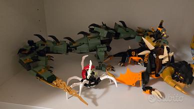 Vendo Lego ninjago in Blocco. Dei set 71747 e 71805 ho anche scatola e istruzioni. Il drago verde dietro è una moc del drago del film per renderlo meno robot