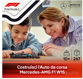 Informazioni su questo articolo Macchina giocattolo del team Mercedes-AMG PETRONAS F1 W 15: questo gioco per bambini e bambine da 10 anni, permette di costruire il modello di Auto da Corsa Mercedes-AMG F1 W15, un veicolo LEGO Speed Champions da esposizione e per le gare dei piccoli Auto LEGO Mercedes con 1 minifigure di pilota: questo playset con auto giocattolo include una minifigure del pilota con tuta del Team Mercedes-AMG PETRONAS F1 e casco, posizionabile all'interno dell’abitacolo per ore di giochi di ruolo Dettagli autentici dal mondo delle macchina da Formula 1: il modellino da costruire di auto da corsa di F1 presenta dettagli di design della versione reale del 2024, inclusi adesivi degli sponsor e pneumatici posteriori larghi con stampa “Pirelli” Modello di auto LEGO F1 da esposizione: dopo che i piccoli si sono divertiti a inventare storie di corse con il veicolo giocattolo, la macchina da Formula 1 diventa un elegante decorazione di casa o un elemento da esporre nella loro camera da letto Idea regalo per amanti delle auto: questo set con macchina da costruire offre una divertente esperienza di costruzione e di gioco, ed è un'ottima idea regalo di compleanno per bambini e bambine, e per gli adulti che amano le auto LEGO da collezione Divertimento da Formula 1 per tutta la famiglia: taglia per primo il traguardo insieme a tutta la famiglia con gli altri set di costruzione (disponibili separatamente) della gamma LEGO F1