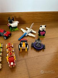 Lego vari: ranocchia, lumaca, coccodrillo, pecora, drago, millepiedi, pinguino, trattore, panda, aereo, dinosauro e navicella.