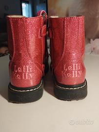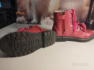 anfibi Lelli Kelly numero 33 rosa lucide glitterate con fiocchi e lacci velluto rosa come nuove
