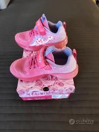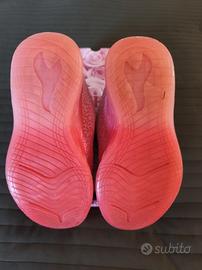 scarpe fuxia e viola della Lelli Kelly con dinosauro e lucine nella suola, per bambina. numero 32. le luci funzionano ma non sono riuscita a fare la foto mentre si illuminano.
