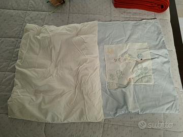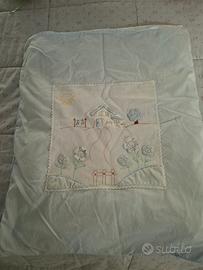 lenzuolo sopra e per finire copripiumoncino completo di piumoncino per tenere al caldo il neonato..