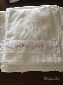 Set di lenzuola ( 9) per culla/cesta vimini compresi di sotto con angoli di cui uno cerato.