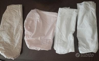 Vendo 4 lenzuoli sotto con bordi elasticizzati adatti a next to me, di cui uno rosa, uno con pallini, e 2 bianchi.
