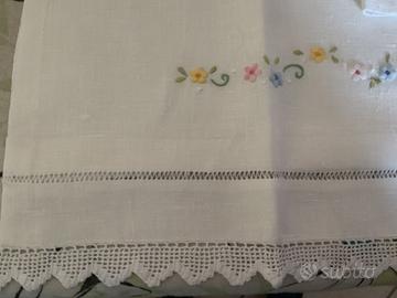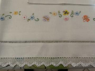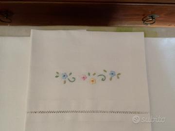 Lenzuolino per carrozzina ricamato a mano con pizzo a uncinetto, Materiale Lino, con federa 69cm x 120cm Federa 42cm x 33cm
