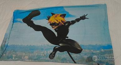 lenzuolo da letto singolo e federa duble face, lady bug e chat noir