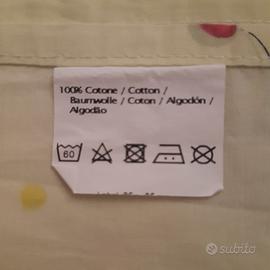 Lenzuolo sopra con federa in puro cotone per lettino/ culla. Misura 165x111 cm adatto a lettini/culle con le sbarre con misure 60x125 cm o simili.