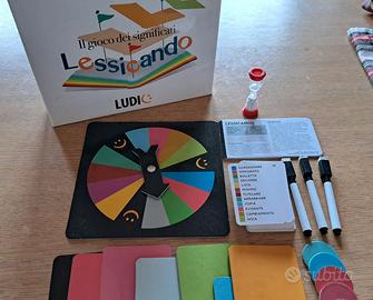 Vendo "Lessicando - Il gioco dei significati", edito da Ludi. È un divertente gioco da tavolo per 4-6 giocatori (età 10+) in cui si sfidano creatività e conoscenza del lessico italiano, inventando definizioni credibili per parole sconosciute. Il gioco è in perfette condizioni. La scatola contiene tutti i componenti originali: - Spinner (ruota) - 6 lavagnette cancellabili - 6 pedine colorate - 1 Clessidra - Carte con regolamento e legenda Perfetto per una serata diversa dal solito.