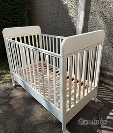 Struttura in legno massello, rete a doghe regolabile, ruote con bloccaggio.