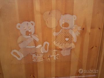 coppia di bellissimi lettini della ditta PALI di Udine completi di materassi, trasformabili, accompagnano il bambini dall'età della culla fino alla elementari (10 anni); perfettamente conservati in tutti i loro accessori arredano la cameretta in maniera deliziosa