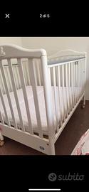 Due lettini Pali , laccati bianco perla, con orsetto Swarovski, con cassetto porta lenzuoli