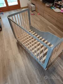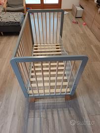 Vendo lettino kinder kraft 120x60 grigio e legno, montabile come da foto oppure chiuso in tutti i lati e su due altezze