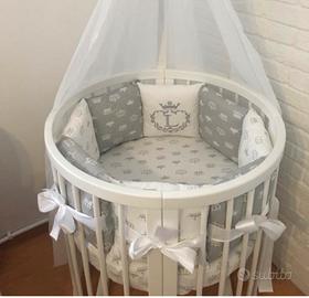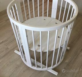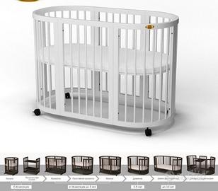 Lettino 7 in 1 per bambini, ideale per neonati fino a 3 anni. Include una culla rotonda con materasso nuovo, mai utilizzato. Inoltre, dispone di un lettino per bambini da 6 mesi in avanti, completo di cuscini paracolpi e un elegante baldacchino bianco. Presenta solo lievi segni di usura, ma nel complesso è in ottime condizioni. Questo lettino trasformabile offre versatilità e qualità, perfetto per accompagnare la crescita del tuo bambino.