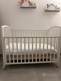 Pali Lettino Neonato Ciak Colore Bianco (con cassetto sotto). Reta ortopedica con doghe in legno comprensiva di kit per regolare l'altezza.