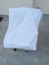 Vendo lettino a cancellini Pali laccato bianco lucido, completo di rete, rotelle, doppio materassino normale e in Memory, paracolpi, piumino, peluche, cassetto inferiore porta oggetti. Tutto lavato, pulito e ben conservato completo di accessori.