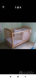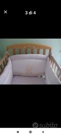 Lettino a cancello con rotelle, legno naturale Pali, in ottime condizioni.