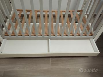 Lettino pali a sbarre e cassetto inferiore e sbarra.laterale che si può abbassare (al momento non presente perché è stata smontata). Vendo completo di materasso in ottime condizioni