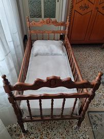 Vendo culla in legno con sponde abbassabili, ruote, materasso, cuscino.