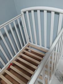 Lettino bianco con cassettoni sotto, sponda e rete regolabile in altezza. Regalo materasso