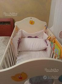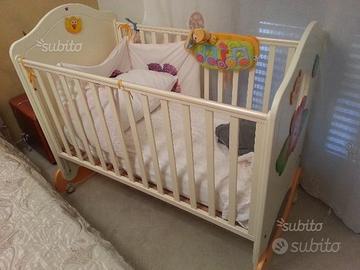 AZUR lettino oblò leone con dondolo. Di colore panna-arancione + materasso. In omaggio giochino musicale e paracolpi.