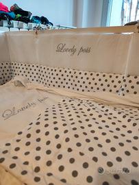 Lettino co-sleeping "Azzurra design" completo di materasso antisoffoco, paracolpi e trapuntino e copritrapunta invernale "Lovely Pois".