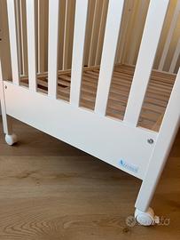 Vendo lettino Azzurra Design in legno bianco, completo di cassetto inferiore. Il lettino è stato montato ma mai utilizzato: mia figlia non ci ha mai dormito, quindi è pari al nuovo. Caratteristiche: •Struttura solida in legno •Sponda regolabile •Cassetto sotto al lettino •Ruote piroettanti con freno Ritiro a mano.