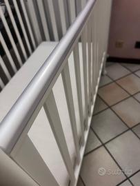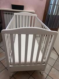 Dotato di ampio cassettone, ruote piroettanti con 2sistemi frenanti, spondine con dentino protettivo in materiale trasparente e atossico.