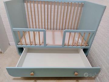 Lettino per bambini Myllra (Ikea) 60x120 cm con cassetti in ottime condizioni. Materasso, praticamente nuovo, incluso. Presenta su un lato piccolo graffi, ora pitturati, fatti dal bambino. Il lettino è parzialmente smontato (vedi foto) ma con libretto di istruzioni per il montaggio.