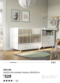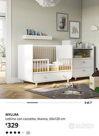 La base del lettino e’ regolabile a 3 diverse altezze. Si pio smontare una sponda quando il bambino e’ abbastanza grande da salire e scendere da solo dal lettino. Il lettino e’ provvisto di un cassetto spazioso. Venduto con materasso in memory foam. Solo consegna a mano zona Alba e dintorni