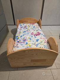 Lettino di grande qualità, in legno, ad altezza montessoriana per dare la possibilità al bambino di scendere in autonomia fin da piccolo.