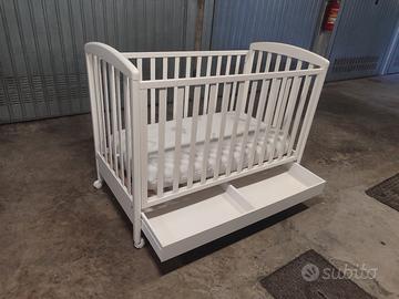 Lettino bambini in buono stato, con ruote e cassetti, materasso pulito sfoderabile, coprimaterasso, dim. 130 x 70 x 100 altezza, sponde regolabili da 74 - 92 cm, e montato, piano terra, zona corso Venezia Torino Nord, possibilità di trasporto.