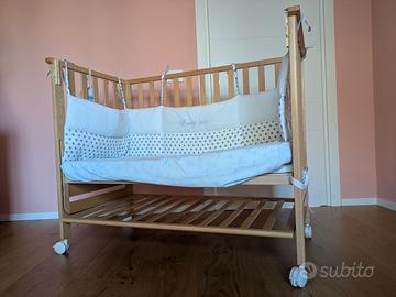vendo lettino per bambini con materasso , paracolpi laterali e fascette di giunzione con letto genitori.